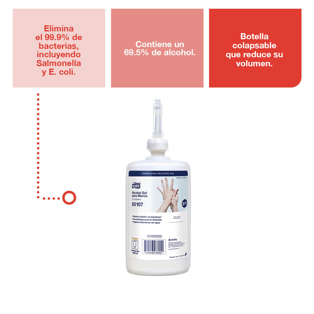 El Gel Antibacterial para Manos ofrece una limpieza efectiva y práctica sin necesidad de agua. Con una fórmula que elimina el 99.9% de las bacterias, incluyendo Salmonella y E. coli, y un contenido de alcohol del 69.5%, garantiza una higiene completa. Además, su botella colapsable y su certificación "Easy to Use" lo hacen una opción sostenible y fácil de utilizar.