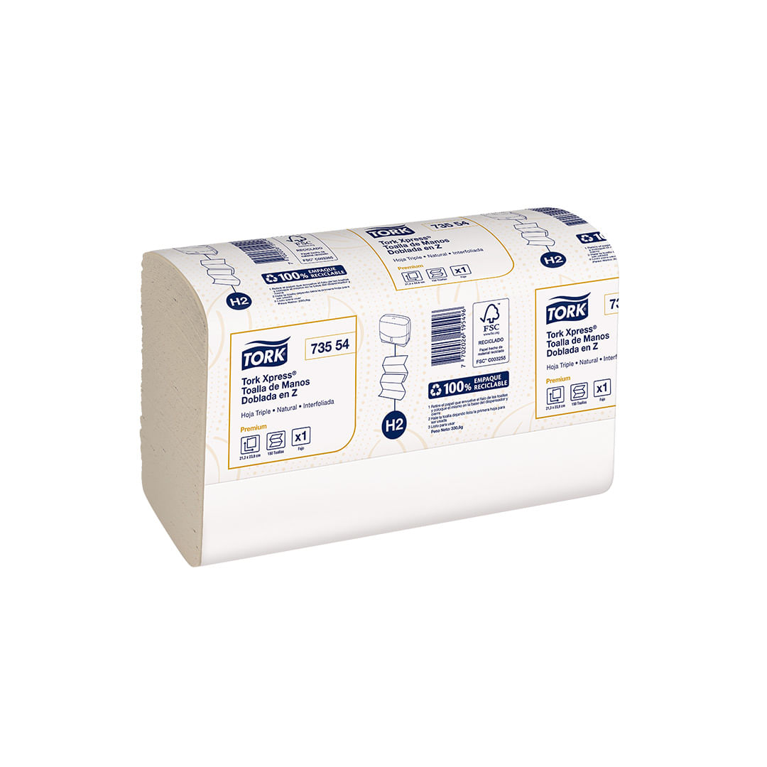 Tork Xpress® Toalla de Manos Doblada en Z/ Premium/ Natural/ 150 toallas/ 24 fajos