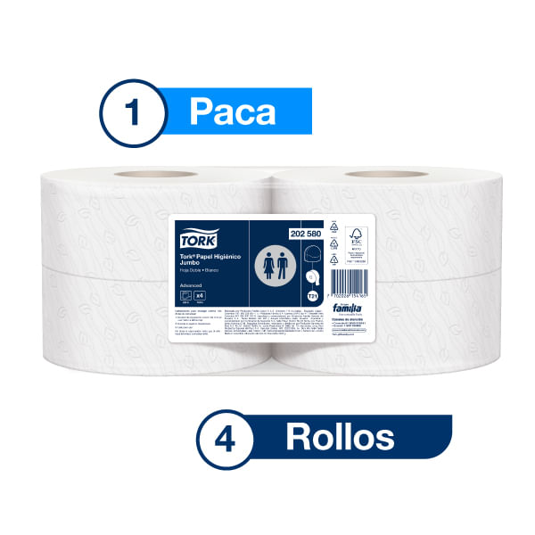 Tork® Papel Higiénico Jumbo/ Advanced/ Blanco/ 250 m / 4 Rollos