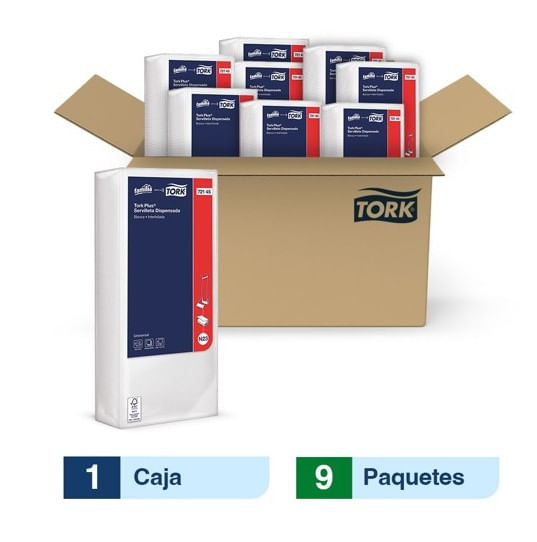 Tork Plus® Servilleta Dispensada/ Universal/ Blanco/ 550 servilletas x pq / 9 paquetes