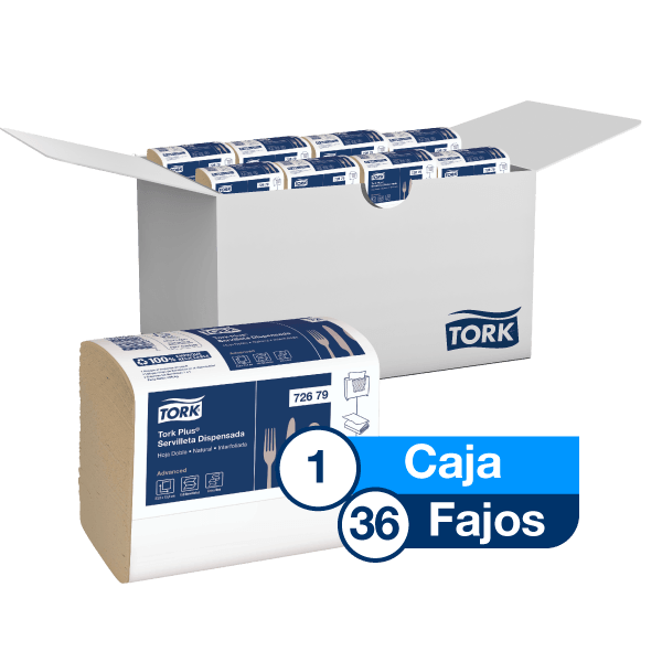 Tork Plus® Servilleta Dispensada/ Advanced/ Natural/ 1 Fajo x150 servilletas / caja x 36 fajos