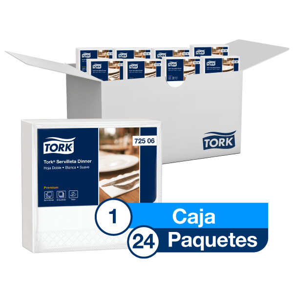 Tork® Servilleta Dinner/ Advanced/ Blanco/ 24 paquetes x 50 serv c/u
