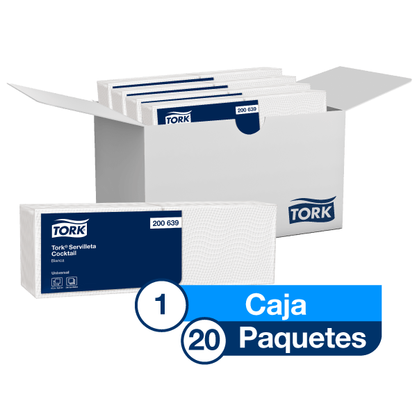 Tork® Servilleta Cocktail/ Universal/ Blanco/ 20 paquetesx 200 serv. c/u